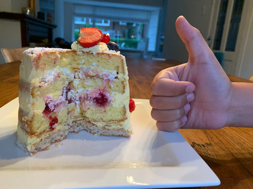 Een bodem van macarondeeg met een laagje crème au beurre gevolgd door een laag biscuit. Hierop zit een laag crème de patissier, slagroom, frambozenconfiture en frambozen. Vervolgens nog een laag biscuit met slagroom. De zijkant is afgewerkt met crème au beurre